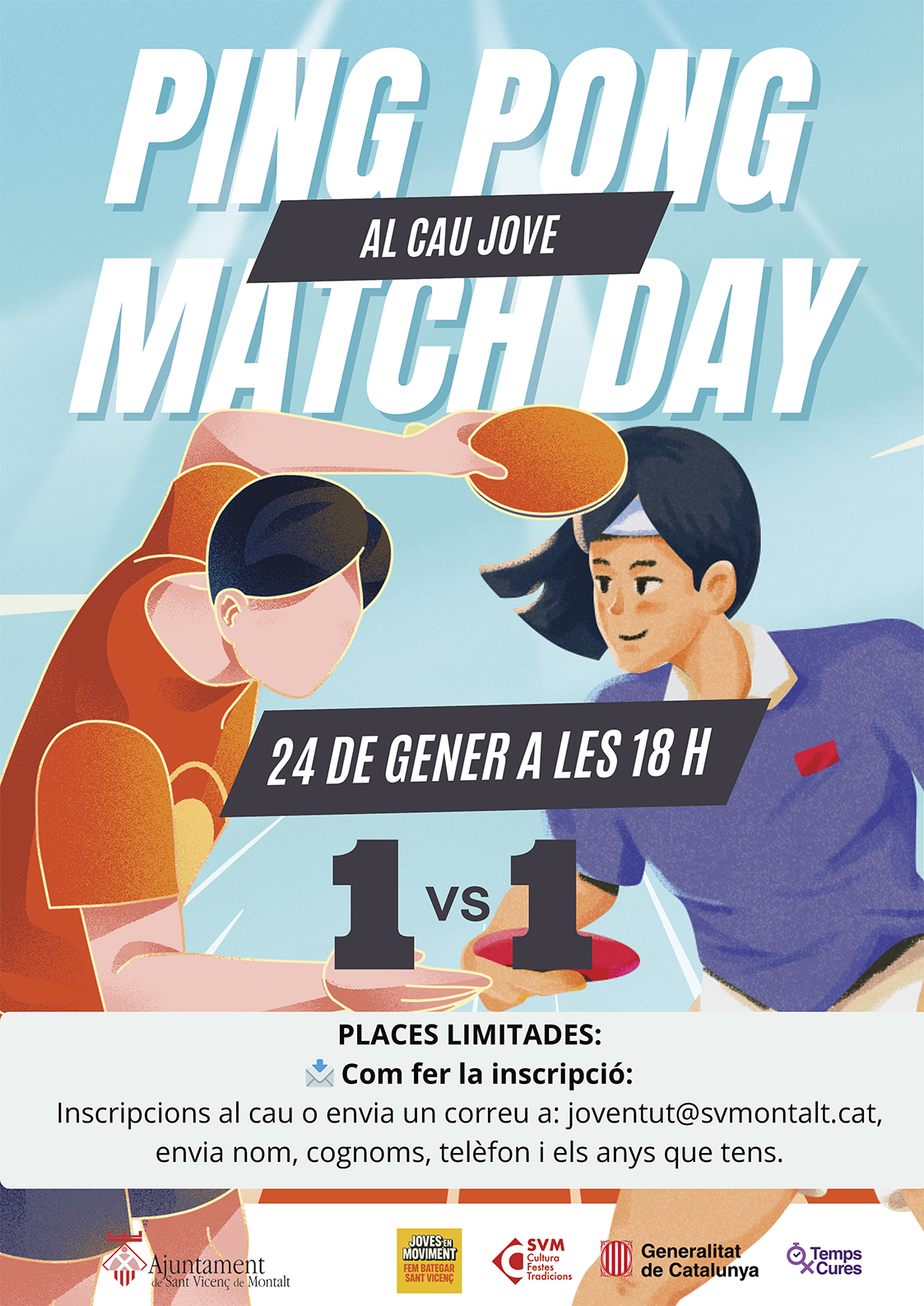 En el marc dels actes de la Festa Major d'enguany, la Regidoria d'Infància i Joventut organitza un torneig de ping pong 1 vs 1.
