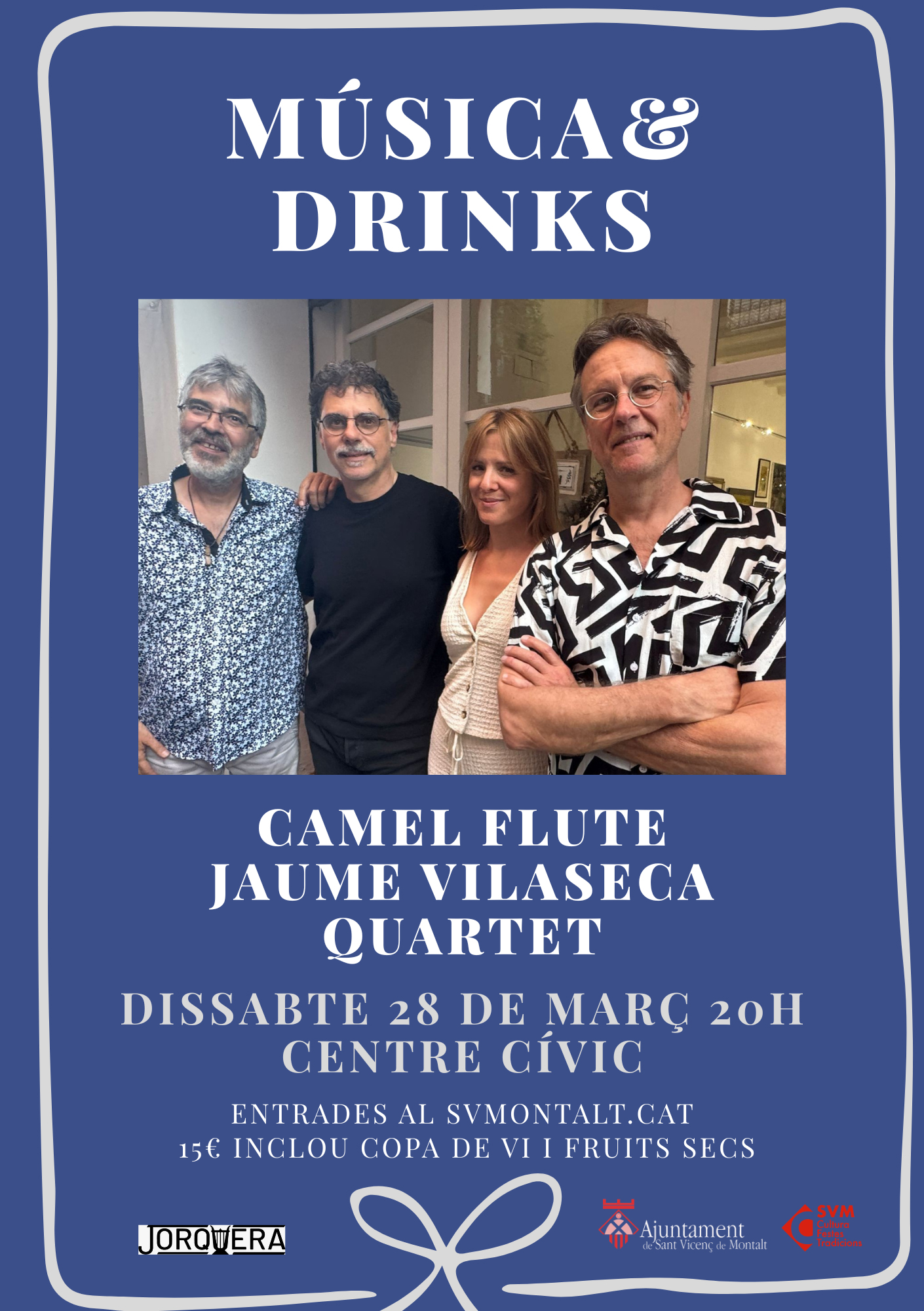 En aquesta ocasió tindrem un concert que ens ofereix un maridatge ben especial entre el jazz i el rock simfònic, amb la proposta Camel on Flute de Jaume Vilaseca Quartet.