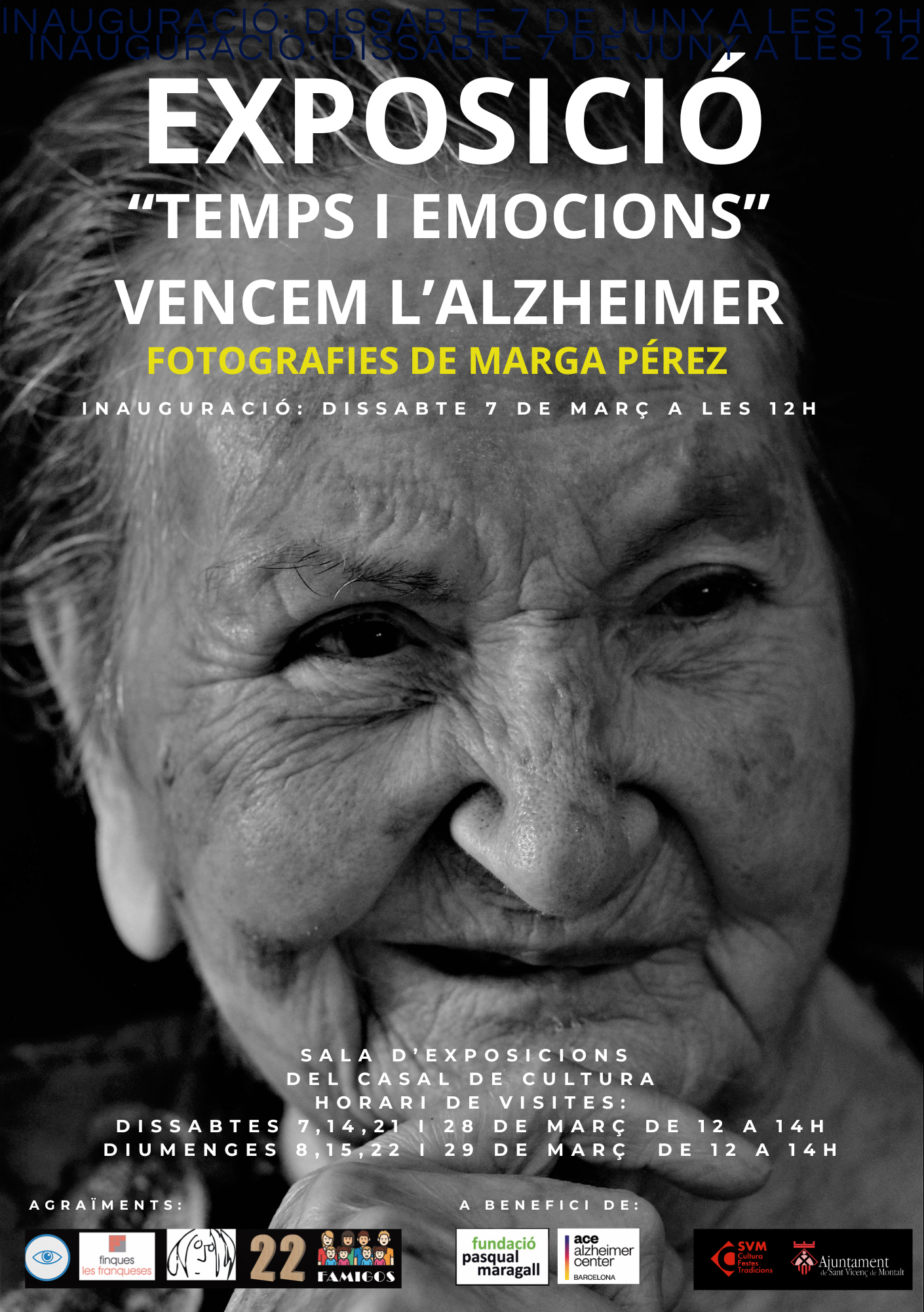Dissabte, 7 de març a les 12 del migdia, s’inaugura l’exposició fotogràfica "Temps i emocions. Vencem l’Alzheimer", de Marga Pérez, al Casal de Cultura. La mostra pretén donar visibilitat a aquesta malaltia i a les persones que la pateixen