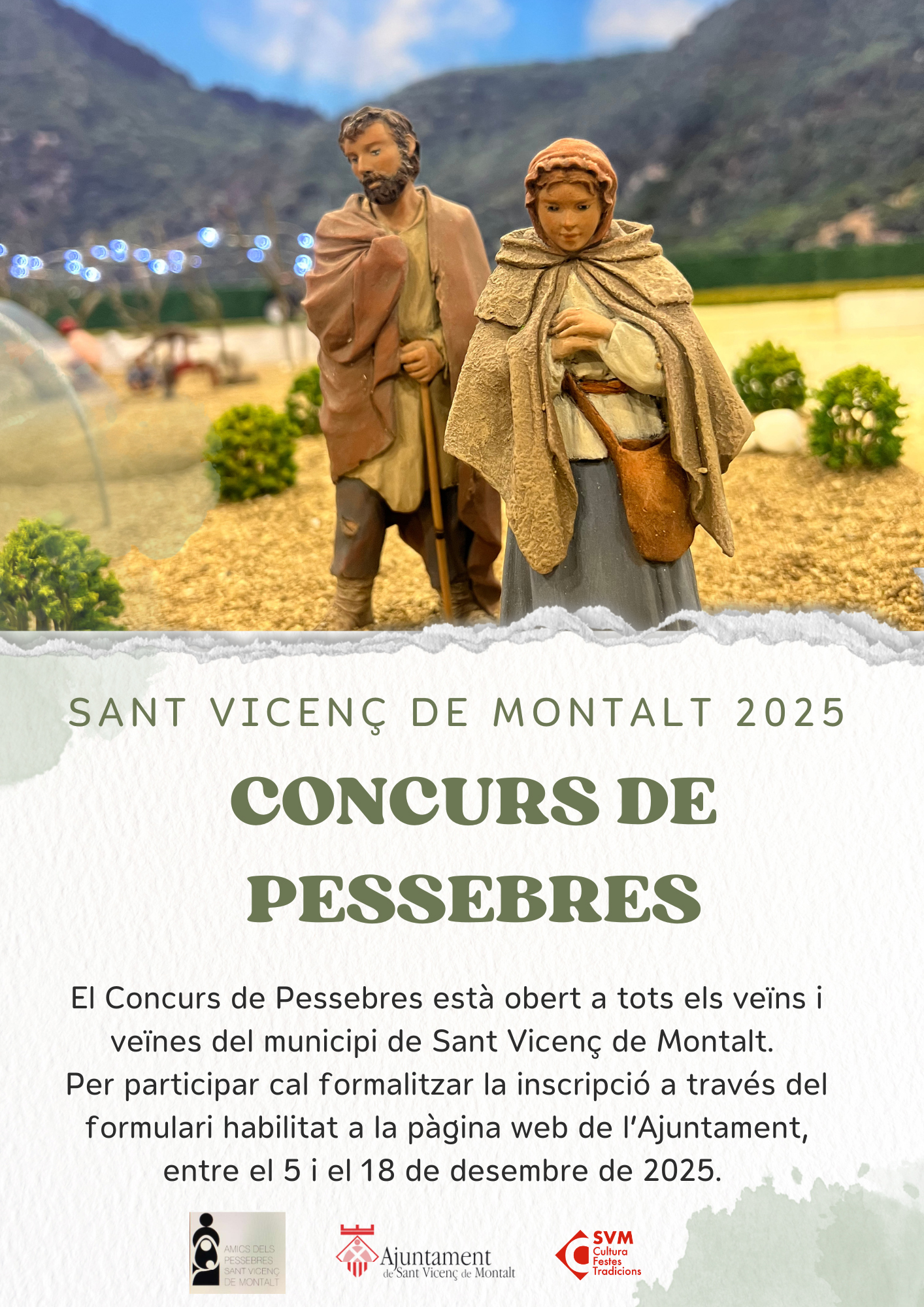 El Concurs de Pessebres està obert a tots els veïns i veïnes del municipi de Sant Vicenç de Montalt, i s’hi poden presentar tot tipus de pessebres, classificats en tres categories: infantil (nens/es fins a 12 anys), popular/tradicional i artístic.