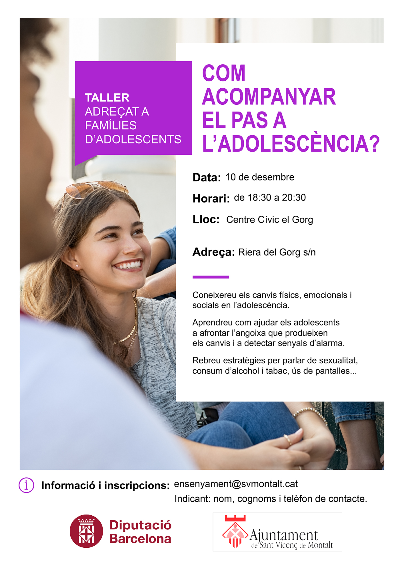L'objectiu d'aquest taller és donar eines que ajudin a les famílies d’adolescents a comprendre’ls i acompanyar-los en aquesta etapa.