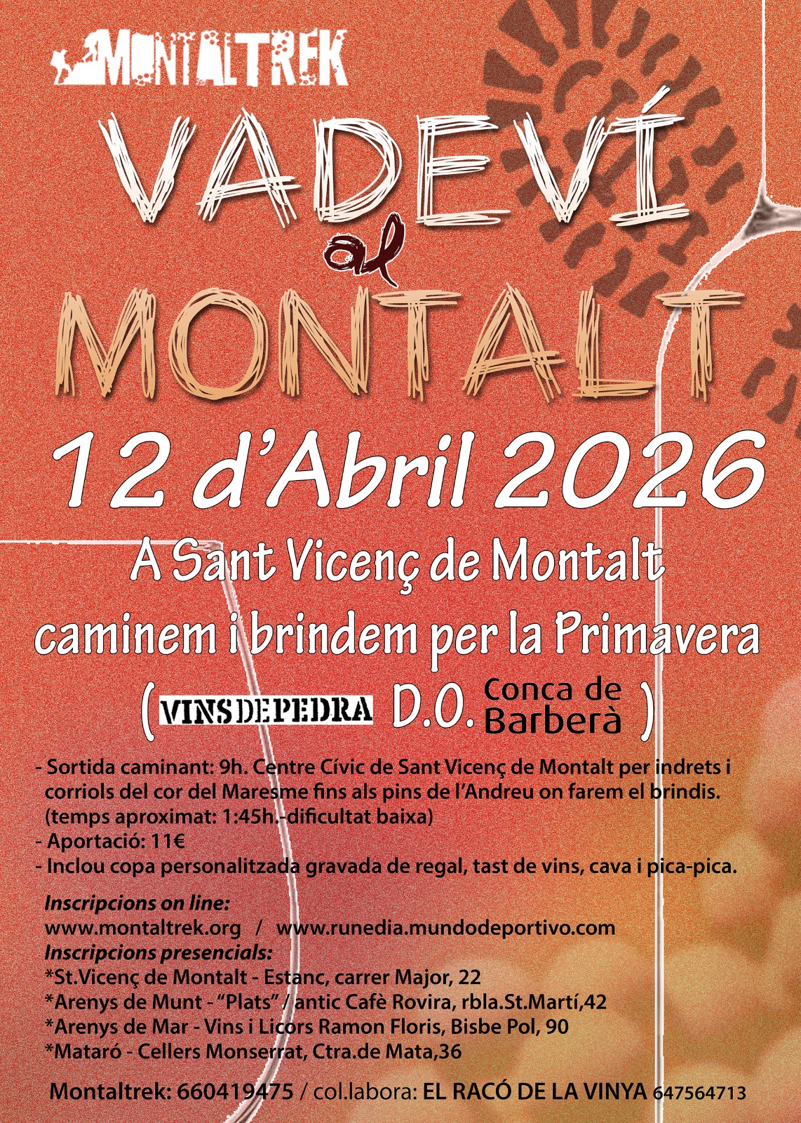 Us hi podeu inscriure fins a l'11 d'abril en aquest ENLLAÇ , a l'estanc de Sant Vicenç i en establiments de diverses poblacions veïnes com Arenys de Mar, Arenys de Munt i Mataró.