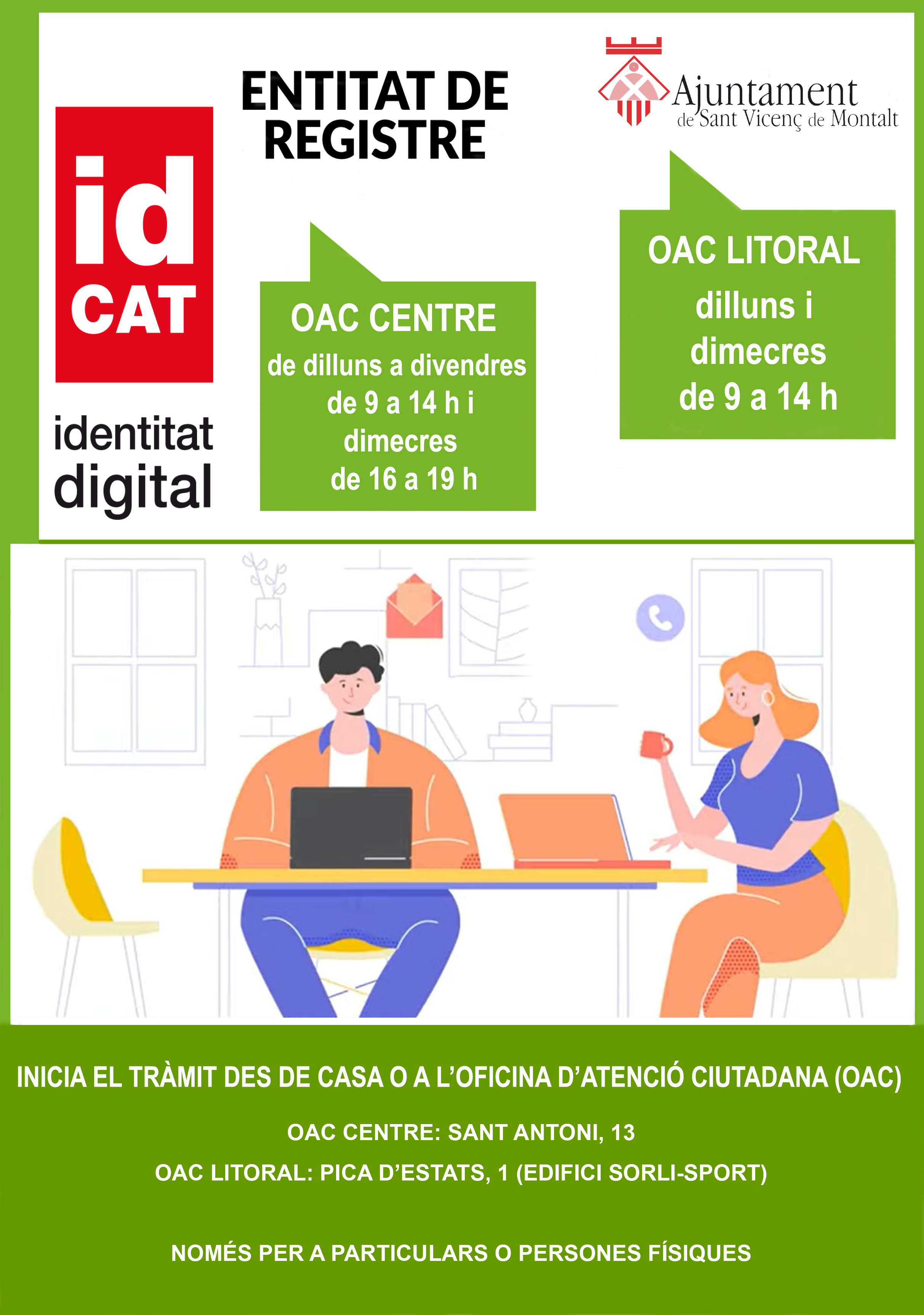 L’Ajuntament de Sant Vicenç de Montalt s’ha convertit des d'aquest mes de març en una entitat de registre de l’idCAT. Es tracta d’un certificat digital emès per l’Agència Catalana de Certificació CATCert que garanteix la identitat de les persones mitjançant una signatura electrònica.