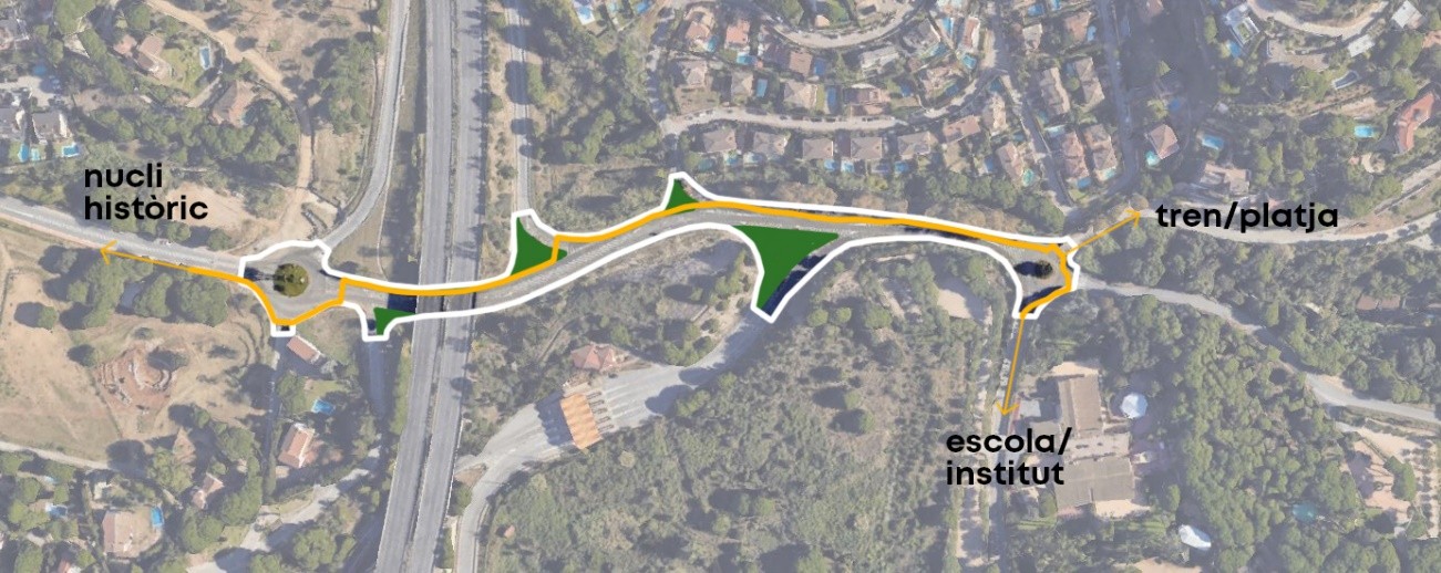 L’objectiu del projecte és generar un itinerari continu que permeti connectar la zona nord i sud del municipi amb condicions de seguretat, superant la barrera que representa la C-32 i facilitant especialment l’accés dels joves als equipaments educatius.